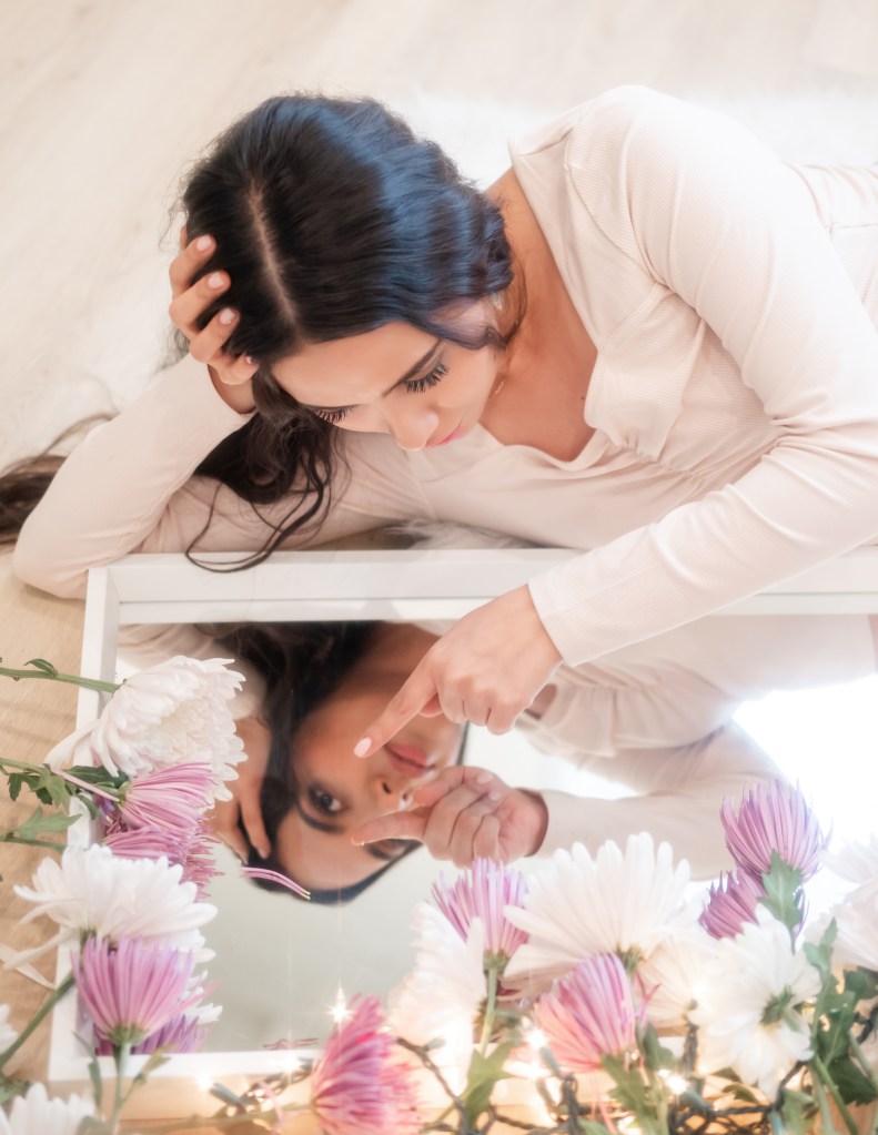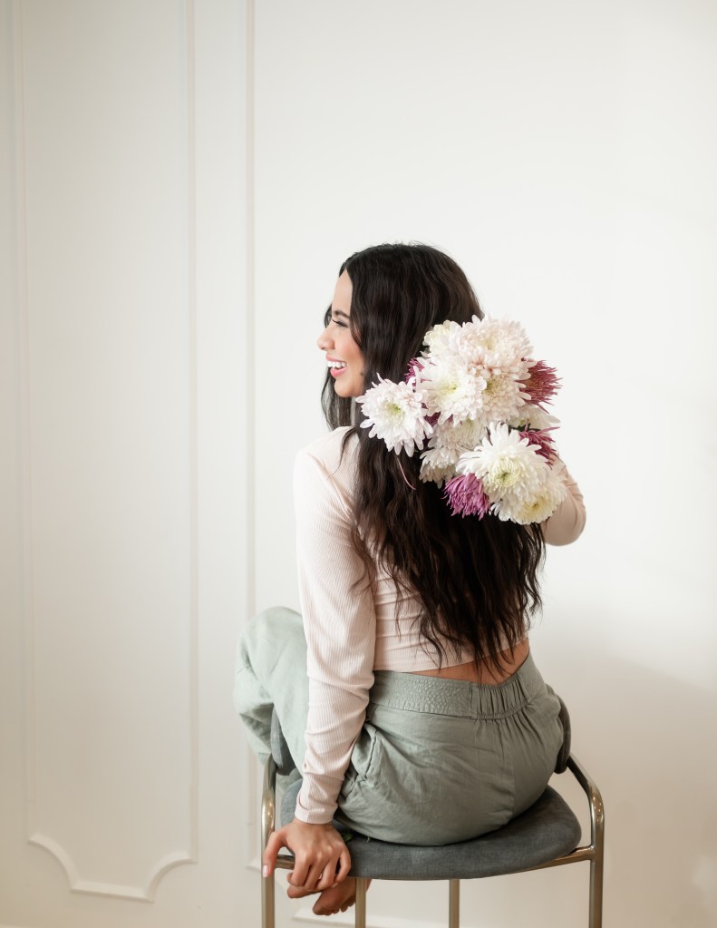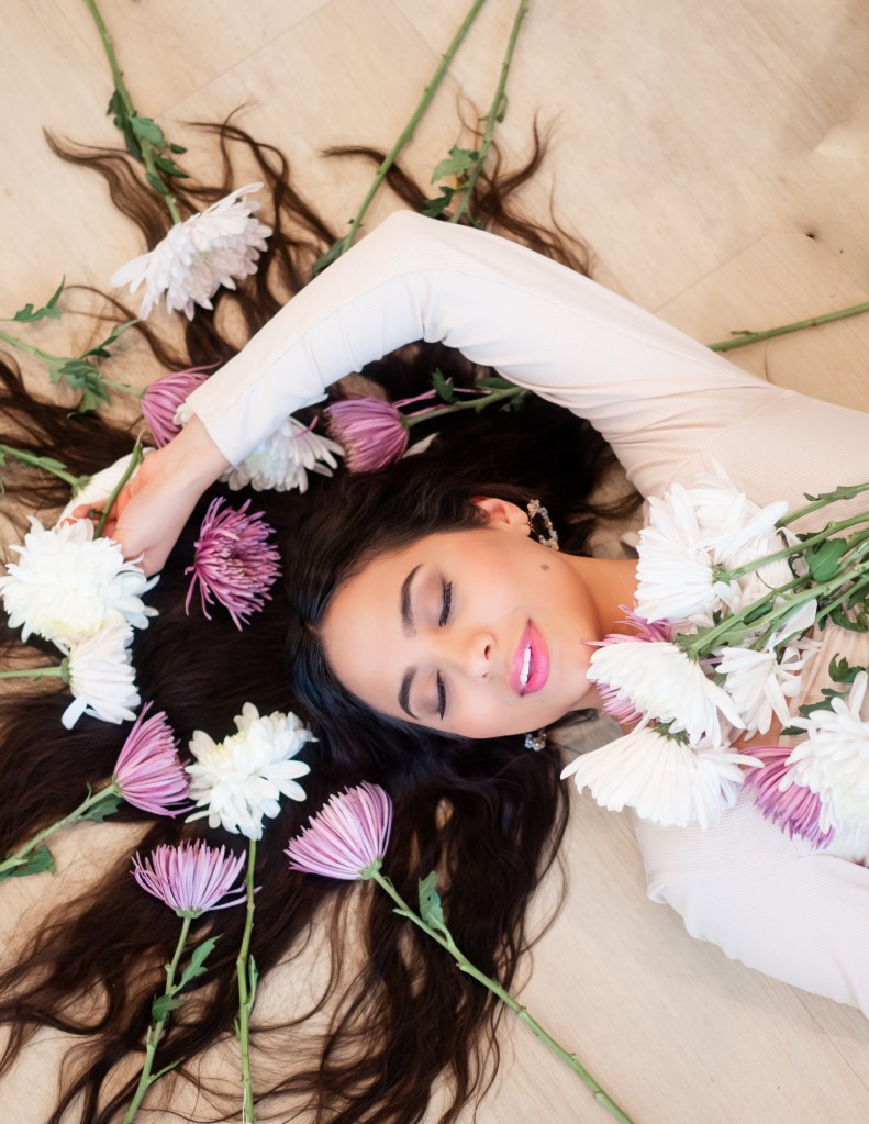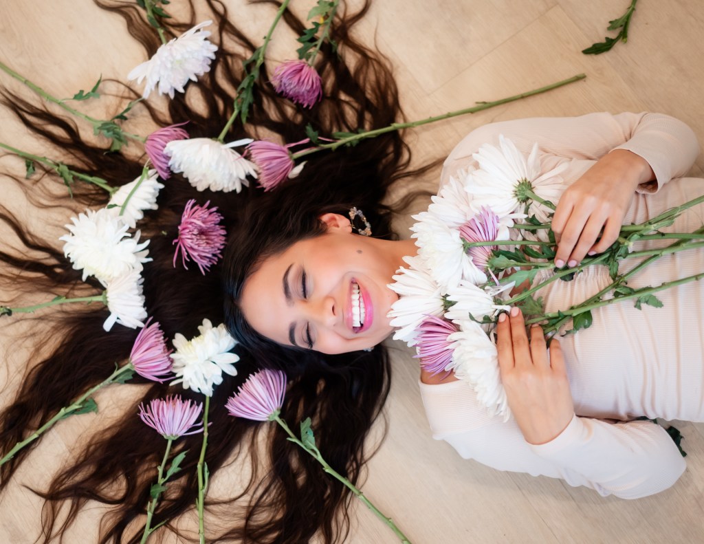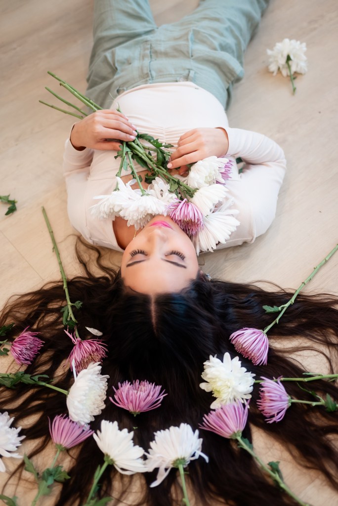 It was her idea to lay down and put the flowers and her hair and it happened!